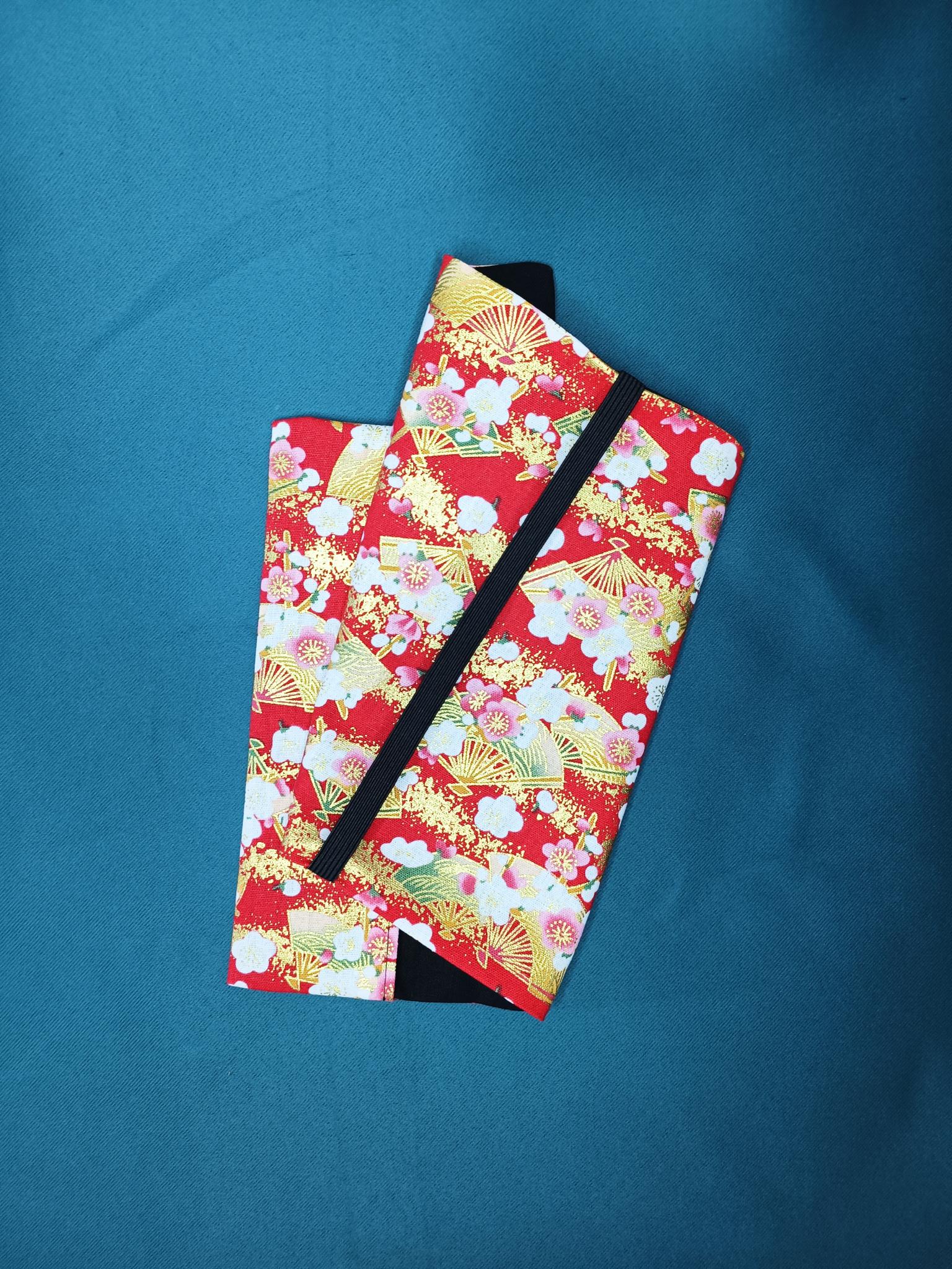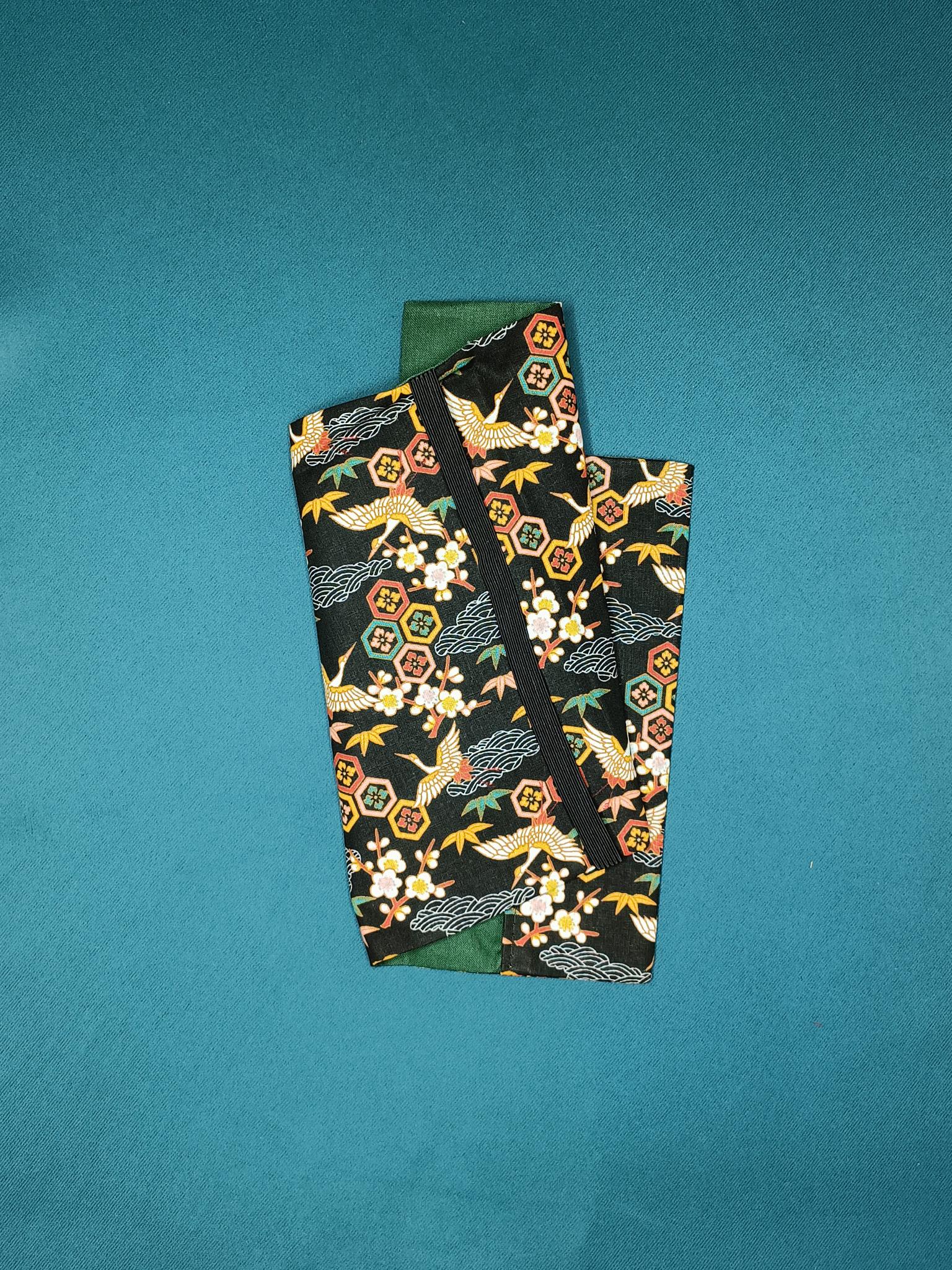 Il se présente avec un tissu extérieur avec motif japonisant, l'intérieur est uni, le tout étant en coton Oeko-Tex.
