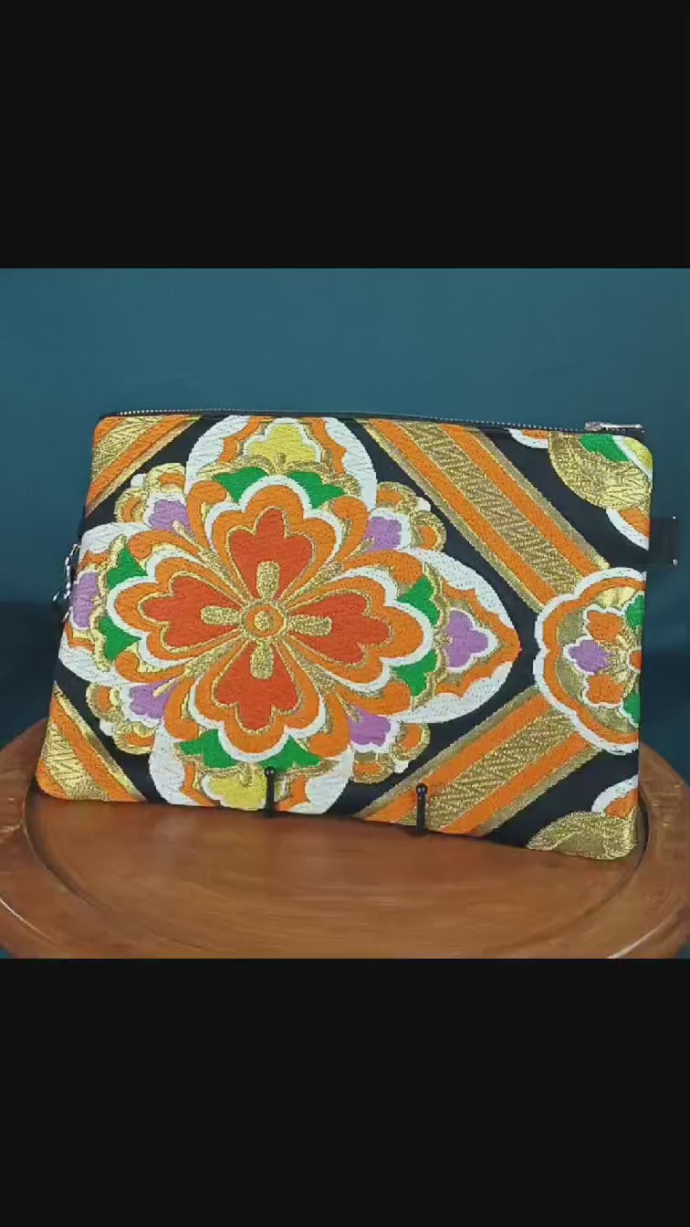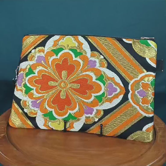 Confectionné à la main dans mon atelier en France, chaque pochette Nara est une pièce unique, créée à partir d’un obi japonais vintage, la ceinture traditionnelle en brocard.