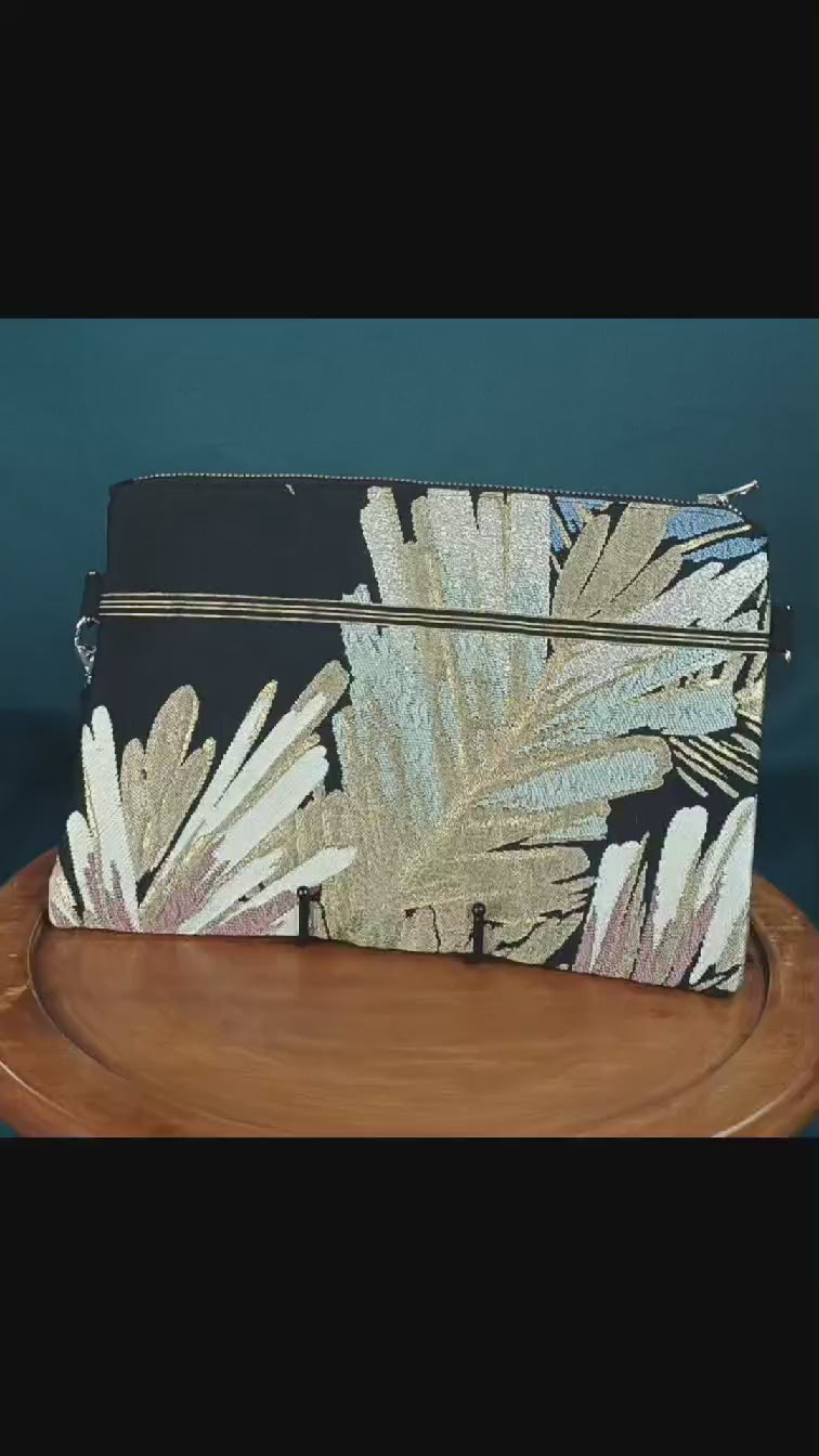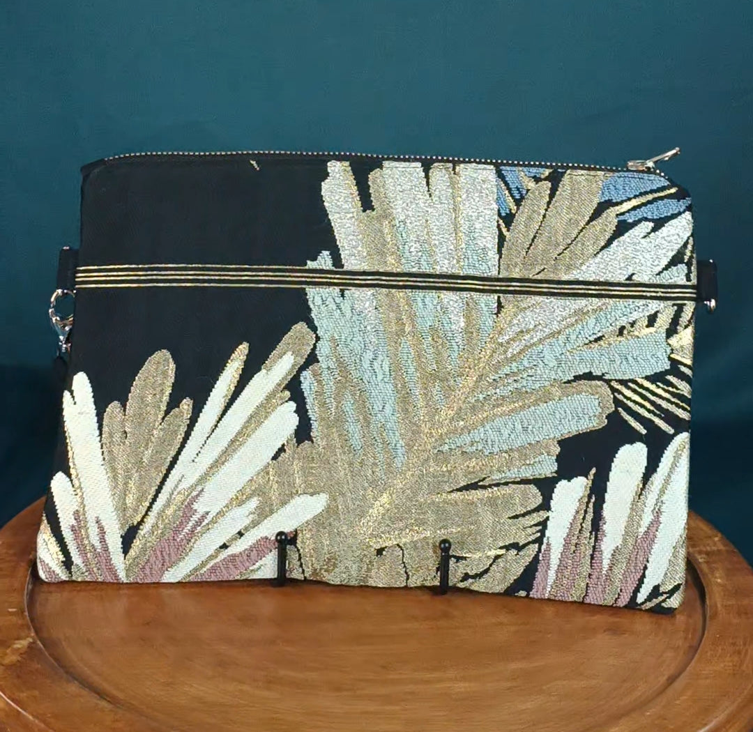 Confectionné à la main dans mon atelier en France, chaque pochette Nara est une pièce unique, créée à partir d’un obi japonais vintage, la ceinture traditionnelle en brocard.